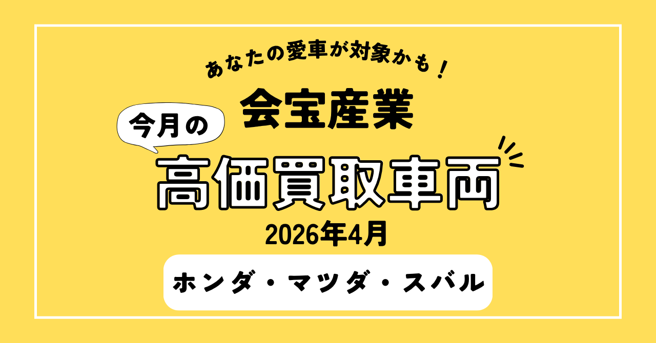 今月の買取強化車両 ~ホンダ・マツダ・スバル~ (2026年4月)