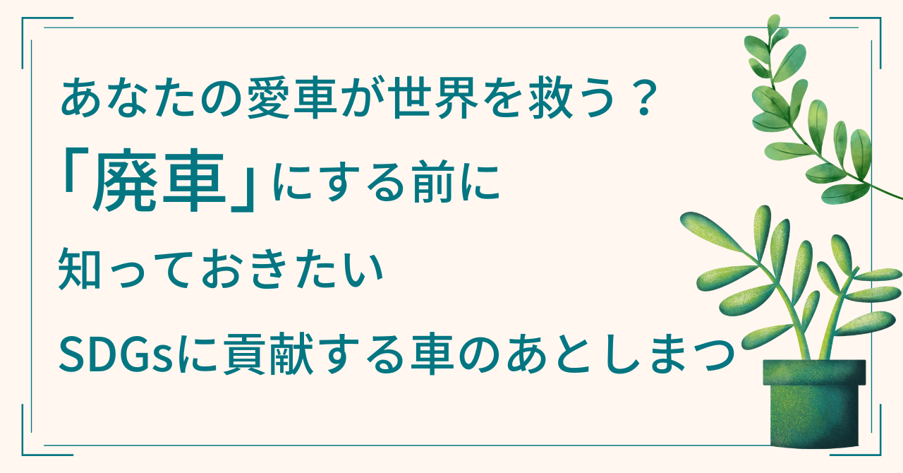 あなたの愛車が世界を救う?「廃車」にする前に知っておきたい、SDGsに貢献する車のあとしまつ