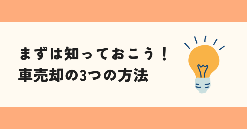車を売却する主な方法には、大きく分けて3つの選択肢があります。それぞれのメリット・デメリットを理解し、ご自身に合った方法を選びましょう。