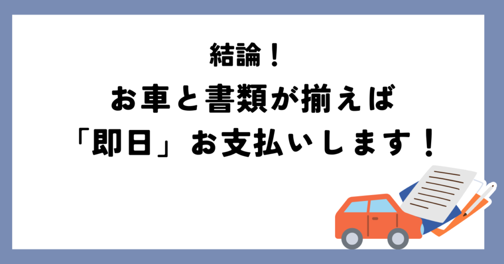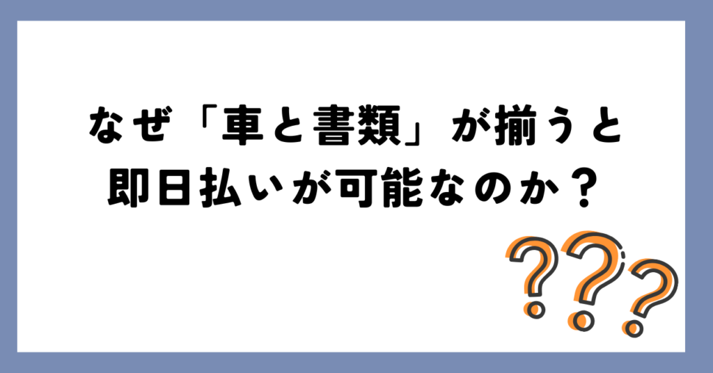なぜ「車と書類」が揃うと即日払いが可能なのか?